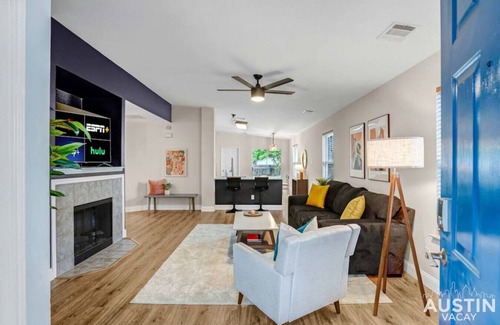 En esta casa de vacaciones que acepta mascotas podrás disfrutar del ciclismo, del senderismo y de mucho más a muy poca distancia. Si subes al coche, estarás a 17min en coche de Sixth Street y a 13min en coche de Zona comercial South Congress Avenue. Además, el alojamiento dispone de garaje donde podrás dejar tu vehículo.