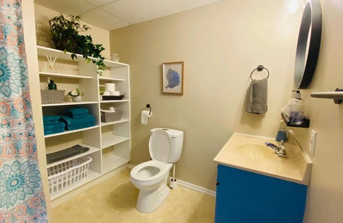 Al instalarte en este alojamiento de 1 dormitorio y 1 baño, encontrarás una sala de estar, un sofá cama, chimenea y aire acondicionado. El cuarto de baño incluye un secador de pelo, toallas y papel higiénico. La cocina está equipada con horno, placa de cocina y frigorífico, además de cafetera y tetera, hervidor eléctrico y máquina de hielo. Y gracias a la lavadora y la secadora, podrás viajar con poco equipaje.
