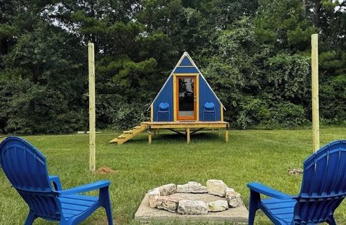 Step inside the cozy A-Frame, designed with a minimalist yet comfortable aesthetic, perfect for unwinding after a day of exploring the outdoors. This A-frame cabin offers a cozy and tranquil retreat for nature lovers. Nestled amidst lush greenery, for enjoying your morning coffee while soaking in the peaceful atmosphere. The bright blue exterior contrasts beautifully with the surrounding trees, creating a picturesque setting for your getaway.