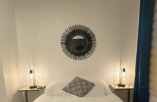 Tucked away in Barceloneta, our private guesthouse apartment offers a cozy sanctuary for two, whether you're exploring the locale or working nearby. This retreat comes with one bedroom with a dedicated workspace with A/C, one bathroom, a unique eclectic décor living room with kitchenette and a coffee bar with local coffee for a true Puerto Rican getaway. Ideal for visitors or remote workers, it's conveniently situated near the industrial area, close to the UAGM campus and Premium Outlets.