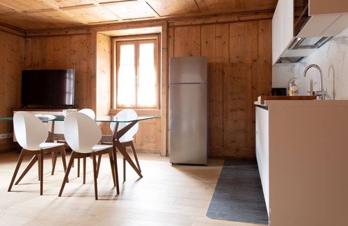 Bright and cosy two-rooms apartment on the first floor of an historical building, in a strategic area close to Bormio, perfect to relax at the thermal baths at Bagni Vecchi and Bagni Nuovi, visit the city and its surroundings and have a great time on the sky slopes. The kitchen is complete with dishes and appliances: water boiler, fridge, dishwasher, induction hob, Espresso-machine and microwave. The sleeping area consists of 1 bedroom with 1 double bed, 1 single foldaway bed (70x140cm), and 1 sofa bed. The apartment is for non-smokers only and is provided with wifi, television, videogame console, scrubber dryer, hair dryer, iron and ironing board, paid private parking, ski/boots holder and toiletries. The house is at your complete disposal and we've put care in every detail in order to welcome you in a clean and comfortable space. You're welcome, take care of it! Please note that pets are not allowed.. Tasa turística: € 1,20 al día por persona. Este importe se debe abonar a la llegada. para un máximo de 7 noches