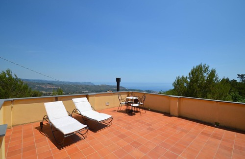 Detached vacation house with garden and roof terrace with sea view in the middle Se encuentra en Cipressa. Detached vacation house with garden and roof terrace with sea view in the middle ofrece alojamiento, con TV, Balcón/Terraza, Ropa de cama/Ropa de cama, Entre otras comodidades. Estas características Casa TV, Balcón/Terraza, Ropa de cama/Ropa de cama, Para que su estadía sea cómoda.