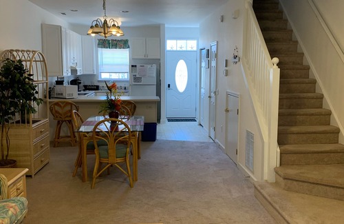 Una bonita comunidad ubicada a 2 millas de la playa. Dos habitaciones con camas queen, 21/2 baños, capacidad para 8. Esta casa incluye una cocina, sala de estar, una sala de sol con dos camas individuales. Los inquilinos deben traer sus propias sábanas queen, sábanas gemelas y toallas.