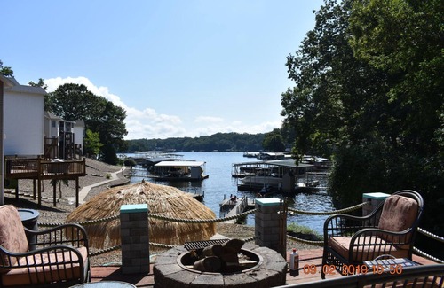 ¡Eche un vistazo a nuestra nueva playa y al jacuzzi recién instalado! Retiro temático tropical ubicado al final de una cala en el marcador de 3 millas en el Lago de los Ozarks. ADICIONES DE HABITACIÓN EN CURSO> DORMITORIO PRINCIPAL CON BAÑO CERCA Y DORMITORIO SUPERIOR. Actualmente cuenta con dormitorio principal en suite con 2 camas queen y baño adjunto, ubicado en el nivel de entrada, así como otro dormitorio queen y baño completo. La sala de estar del nivel inferior incluye una amplia cocina bien surtida y otro dormitorio con cama queen. Baño de nivel inferior con ducha. Cómodo sofá seccional con cama extraíble para 2. El asiento de amor plegable tiene capacidad para una persona adicional. Gran patio con parrilla de gas y pozo de fuego. TV en todas las habitaciones y WiFi de alta velocidad incluido. Ropa de cama y toallas. Lavadora / secadora disponible para su uso. Muelle compartido con deslizamiento incluido. Muelle de natación separado. Amplio aparcamiento. Venga a relajarse en una hermosa casa con un muelle seguro para nadar lejos del tráfico de botes.