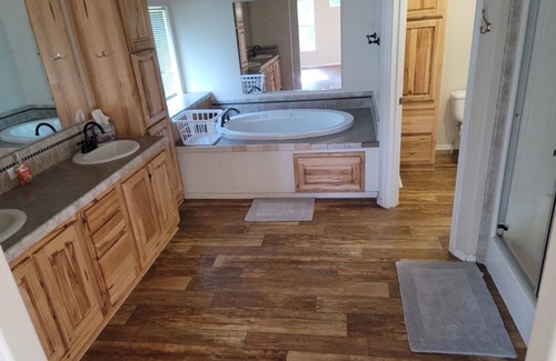 La cocina está equipada con horno y lavavajillas, además de cafetera y tetera, microondas y utensilios de cocina. Pon a prueba tus habilidades jugando al billar, o disfruta de la conexión a Internet y de la televisión. El cuarto de baño incluye toallas, papel higiénico y jabón. Y gracias a la lavadora y la secadora, podrás viajar con poco equipaje. Otras comodidades de este alojamiento de 4 dormitorios y 2 baños incluyen ropa de cama, calefacción y una mesa de comedor.