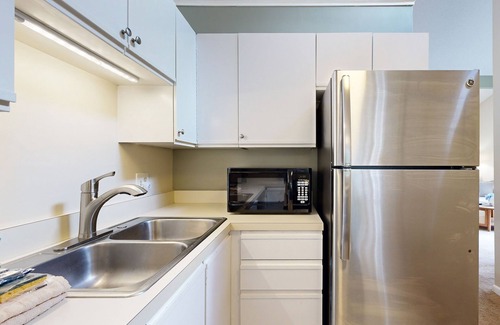 La cocina está equipada con horno, placa de cocina y frigorífico, además de cafetera y tetera, microondas y utensilios de cocina. El cuarto de baño incluye un secador de pelo y toallas. Y gracias a la lavadora y la secadora, podrás viajar con poco equipaje. Otras comodidades incluyen una sala de estar, ropa de cama y calefacción.