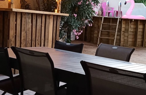 Duplex "Les filles de la mer" private pool air conditioning posee 4 Dormitorios , 2 Baños, y ocupación máxima de 18 people. El alquiler mínimo para esta propiedad es 1 nights, Pero esto puede cambiar dependiendo de la temporada que planee quedarse. Los invitados anteriores han dado un buen calificado, y VRBO lo etiquetó como un Condominio de primera calificación debido a los excelentes servicios prestados por el propietario o gerente de este Condominio, y ha proporcionado constantemente excelentes experiencias para sus invitados. La mayoría de las familias o invitados que lo usan lo recomiendan a sus amigos y algunos son invitados repetidos. Condominio tiene un vecindario amigable, y el Marseillan Plage tiene lugares interesantes para visitar. Si quieres aprender más sobre el Condominio en Marseillan Plage, Como lugares para visitar y cosas para hacer cerca, puede consultar a continuación para obtener más información.