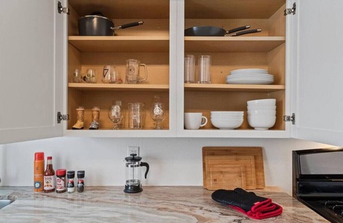 La cocina está equipada con horno, placa de cocina y frigorífico, además de cafetera y tetera, microondas y utensilios de cocina. Conéctate al wifi gratis, o relájate frente a un Smart TV. El cuarto de baño incluye un secador de pelo y toallas. Y gracias a la lavadora y la secadora, podrás viajar con poco equipaje. Otras comodidades de este alojamiento de 1 dormitorio y 1 baño incluyen ropa de cama, una tabla de planchar, aire acondicionado y calefacción.