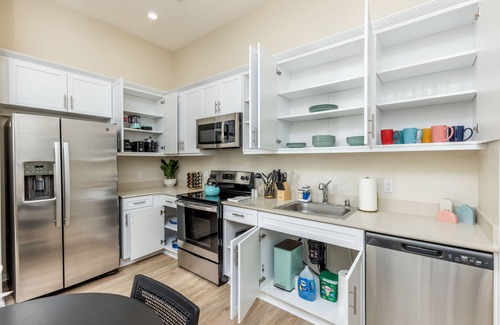 Este alojamiento de 1 dormitorio y 1 baño cuenta con una sala de estar, un comedor, una zona para barbacoas y aire acondicionado. El cuarto de baño incluye un secador de pelo, toallas y papel higiénico. La cocina está equipada con horno, placa de cocina y frigorífico, además de cafetera y tetera, hervidor eléctrico y máquina de hielo. Y no tendrás que llevarte ropa de más, porque podrás aprovechar la lavadora y la secadora.