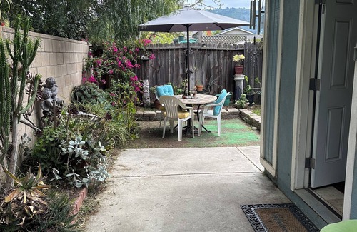 Privado 1 hab con cama queen. Entrada independiente, cocina, patio, patio con mesa y sombrilla. Futón en el área de la sala de estar donde pueden dormir 2 niños o 1 adulto (2 adultos si no le importa estar cómodo). Barbacoa de gas en el patio para su uso. A 10 minutos de Ojai y 15 minutos del centro de Ventura y la playa. Hay restaurantes, mercados, tiendas de segunda mano, la parada de autobús y la lavandería, todo a 10 minutos a pie de la casa. No hay televisión en este espacio, pero acceso completo a internet inalámbrico.