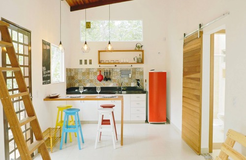 El diseño moderno encuentra comodidad y alegría para el alma de quienes vienen a pasar el tiempo. Cada detalle pensado con mucho amor y cuidado, y una pequeña pieza de varios sueños realizados en este espacio. Los árboles circundantes, las aves y el jardín crean un ambiente de bosque atlántico y es difícil creer que estamos en el cerrado. "Relajante", "abierto" e "inspirador" son algunas palabras que escuchamos de quienes nos visitan.