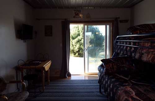 Bunkhouse en un bello y tranquilo entorno campestre. Venga a disfrutar de esta tranquila vista del país y el ambiente. Puertas corredizas de vidrio y una pequeña terraza es un lugar ideal para tomar un café por la mañana. Esta escapada es un estudio con dos literas (3 gemelas / 1 tamaño completo), cocina, cafetera, tostadora, microondas, refrigerador, mesa y 2 sillas, baño con ducha. Esta es la escapada perfecta o pabellón de caza. Familias bienvenidas, Cazadores bienvenidos.