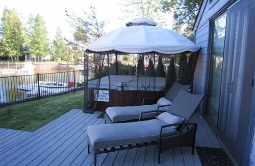 Esta casa se encuentra justo en el agua con su propio muelle privado, mesa de billar, gran pantalla de televisión y una bañera de hidromasaje en la terraza!