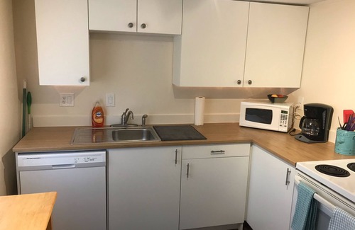 Esta es una casa de huéspedes de dos dormitorios / 1 baño que está amueblada con un gran televisor de pantalla plana, Wi-Fi, estufa / horno eléctrico, ollas y sartenes, cubiertos y utensilios, microondas, cafetera, lavavajillas y triturador de basura. etc: