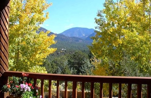 ¡La temporada del valle de esquí de Taos se extendió hasta mediados de abril!¡La mejor nieve de Taos! Dragonfly es un elegante "refugio de montaña" único en su tipo, cerca de Ski Valley Road, y a medio camino entre la ciudad de Taos y Taos Ski Valley. Esta propiedad cerrada de 6,000 pies cuadrados en 5 acres tiene un ambiente del suroeste con techos de viga, apliques de cobre, nichos y una decoración de lujo y arte original.