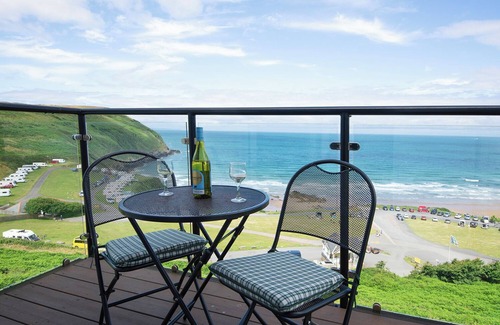21 CLIFTON COURT - Sleeping 4 - Este encantador apartamento de 2 dormitorios está en una posición elevada. En consecuencia, sus vistas panorámicas al mar se extienden desde el campo de National Trust hasta la gloriosa bahía de Woolacombe de 3 millas, Baggy Point y el canal de Bristol hasta la isla de Lundy. La extensa playa de arena dorada de Putsborough, una de las mejores playas con bandera azul de Gran Bretaña, está a solo 5 minutos a pie. La piscina cubierta climatizada y la piscina para niños pequeños están situadas a solo 15 metros de la puerta de entrada, en un edificio cerrado y cerrado ... ¡nadar antes del desayuno!