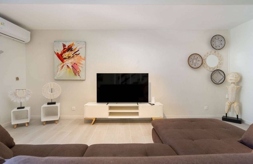 Welcome to **Fare Kenzo**, a beautiful duplex apartment offering everything you need for an unforgettable vacation or business stay. This spacious accommodation includes three air-conditioned bedrooms, two modern bathrooms, and an independent WC for optimal comfort. The air-conditioned living room opens onto a lovely terrace with an outdoor "zen" area, perfect for moments of relaxation. Fare Kenzo is just a 2-minute walk from a charming white sand beach and a short stroll to the Royal Tahitien Hotel, where you can enjoy local specialties or simply sip a cocktail by the water. The center of Papeete is only a 10-minute drive away, providing quick access to shops, restaurants, and attractions. Fare Kenzo is the ideal choice for a relaxing vacation or a comfortable and convenient business stay.
