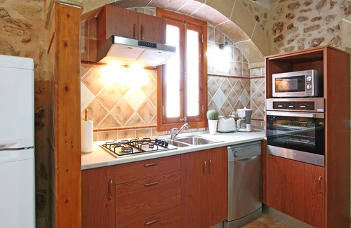 Descubra esta histórica casa mallorquina cuidadosamente restaurada en una amplia parcela de 12 hectáreas. La casa se renovó ampliamente en 2014 y ofrece una zona de estar moderna y diáfana con cocina integrada y acceso a Internet. El alojamiento consta de dos cómodos dormitorios, uno con dos camas individuales y el otro con una acogedora cama doble, ambos equipados con amplios armarios.