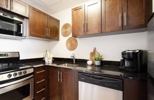 Al instalarte en este alojamiento de 1 dormitorio y 1 baño, encontrarás aire acondicionado y oficinas. Disfruta del wifi y de la televisión. El cuarto de baño incluye un secador de pelo y toallas. Prepara una comida casera en la cocina, equipada con horno, placa de cocina y frigorífico, además de cafetera y tetera, microondas y utensilios de cocina. Otras comodidades incluyen ropa de cama, una tabla de planchar y calefacción.