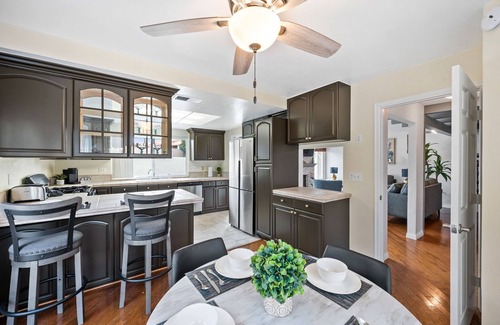 Al instalarte en este alojamiento de 3 dormitorios y 2 baños, encontrarás una sala de estar, una zona para barbacoas, aire acondicionado y escritorio. También puedes utilizar la bañera de hidromasaje, además de otras comodidades como toallas, champú y jabón. Prepara una comida casera en la cocina, equipada con horno, placa de cocina y frigorífico, además de cafetera y tetera, hervidor eléctrico y máquina de hielo. Podrás viajar con poco equipaje, porque tendrás una lavadora y una secadora a tu disposición.