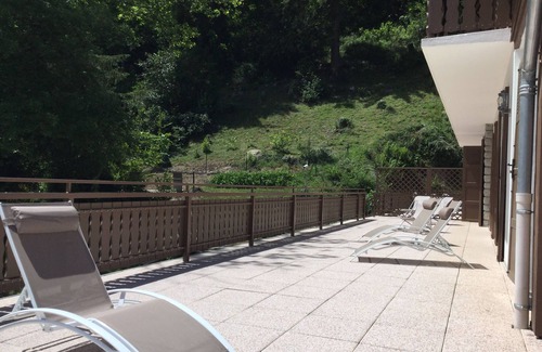 Terraza de 100 m² con muebles de jardín para desayunar mientras contempla las montañas. Tumbonas y chiles en temporada de mayo a octubre.