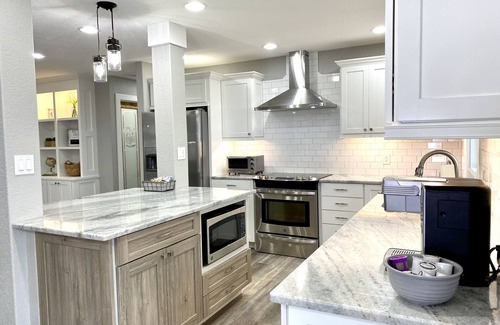 Al instalarte en este alojamiento de 3 dormitorios y 2 baños, encontrarás una sala de estar, barbacoas de gas, chimenea y aire acondicionado. También puedes utilizar la bañera de hidromasaje, además de otras comodidades como toallas, champú y jabón. Prepara una comida casera en la cocina, equipada con horno, placa de cocina y frigorífico, además de cafetera y tetera, máquina de hielo y microondas. Y gracias a la lavadora y la secadora, podrás viajar con poco equipaje.