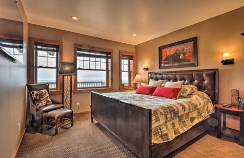 Comience sus vacaciones por la mañana tomando una taza de café caliente en la cubierta parcialmente cubierta, mientras admira las vistas panorámicas; asegúrese de traer sus binoculares para poder pasar horas viendo el paisaje en el valle. Más tarde, prepare sus comidas favoritas en la cocina totalmente equipada, con electrodomésticos de acero inoxidable. Después de un día al aire libre, relájese en la sala de estar, donde puede ver sus películas favoritas en el televisor de alta definición de pantalla plana, mientras se acomoda junto a la chimenea de leña. Por la noche, reúnase alrededor de la fogata para asar malvaviscos con sus acompañantes, antes de retirarse a una de las acogedoras habitaciones para una buena noche de sueño.