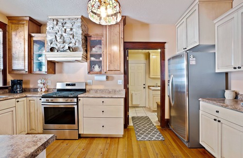 La casa ofrece 4 dormitorios + 4 áreas de dormitorio con cubículos, 3 baños, sala de estar, sala familiar, comedor, sala de entretenimiento, garaje para tres autos y un amplio estacionamiento para vehículos recreativos o para varios automóviles. The Jackson House puede acomodar a grupos grandes, pero la tarifa de alquiler por noche es perfecta para parejas y fiestas pequeñas. La casa tiene capacidad para 8 personas en camas, pero los huéspedes también pueden usar el sofá cama y 3 colchonetas.