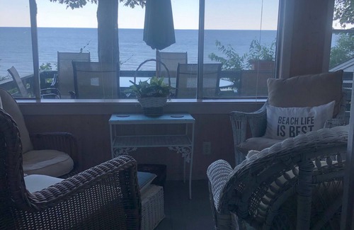 Un porche delantero con mosquitero, con una terraza adjunta, es ideal para leer, observar el atardecer y experimentar las tormentas de otoño mientras retumban sobre el lago Michigan. Cierra las ventanas o te mojarás. Hay un pequeño porche trasero para el almacenamiento, para sus bicicletas, refrigeradores, bolsas de playa, cañas de pescar y cometas.