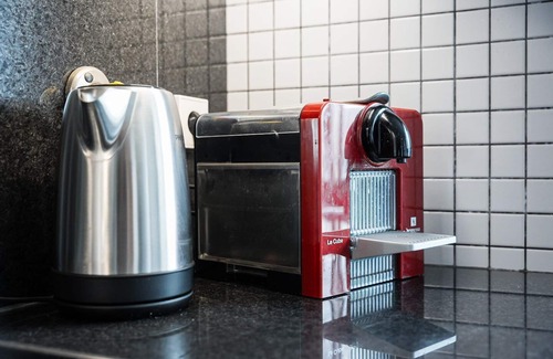 La cocina está totalmente equipada con todo lo esencial para preparar una deliciosa comida, incluyendo una placa eléctrica, horno, microondas, cafetera, y mucho más. También hay una lavadora disponible para sus necesidades de lavandería.