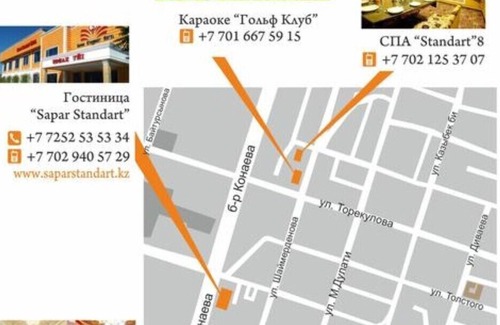 El Sapar Standart Hotel se encuentra a 100 metros del centro comercial Kanny. El aeropuerto internacional de Shymkent se encuentra a 25 minutos en coche.