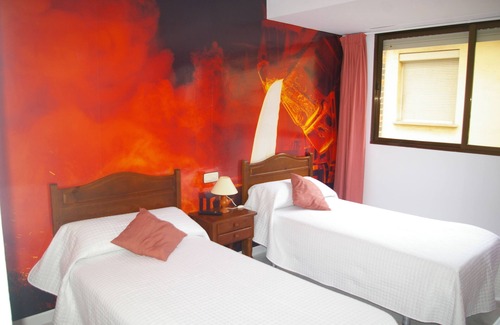Habitaciones tematizadas con baño privado en el interior, TV, WiFi , Aire Acondicionado y nevera en edificio de 3 plantas a 150 m de la playa y muy cerca de uno de los polígonos industriales de la ciudad.
