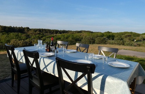 VISTA AL MAR (200 m de la playa) a la izquierda, dunas al frente, bosque a la derecha: más de 500 hectáreas deshabitadas en el fondo del jardín.