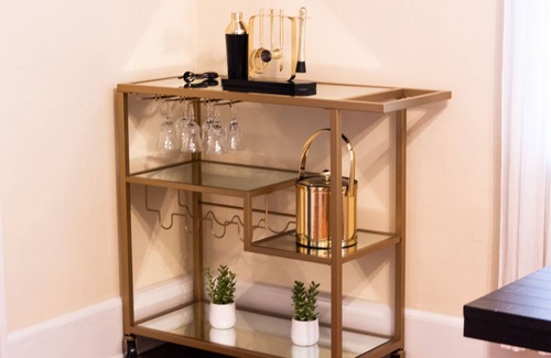 Esta casa tiene actualizaciones divertidas como: entrada sin llave, Apple TV, estación de carga inteligente para automóviles y espejos de baño LED, que seguramente harán que su visita sea agradable.