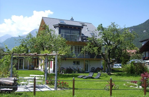 Precioso apartamento de 3.5 habitaciones en dos plantas en una casa de 3 familias en un lugar hermoso y tranquilo a las afueras de Meiringen. Magnífica vista de las montañas. Sala de estar con TV vía satélite, radio, estufa sueca y con galería (con 1 cama adicional), WiFi disponible. 2 dormitorios con una cama doble cada uno (se puede acceder al segundo dormitorio y a la galería con una cómoda escalera). Cocina con horno, lavavajillas, heladera con freezer. Un baño (bañera de esquina, ducha, inodoro), balcón, amplio jardín de uso compartido, asientos abiertos y cubiertos, salón, barbacoa, parque infantil y aparcamiento privado. (Espacio habitable 76m2)