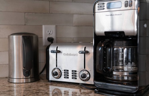 Esta casa está bien aislada para mantener una sensación acogedora independientemente del clima exterior. Hay calefacción central y aire acondicionado, así como una estufa de gas en la sala de estar principal para brindar mayor comodidad en esas noches frescas.