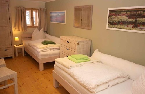 Our holiday home is absolutely quiet and completely away from busy streets and towns, approx. 5 km from Bad Schandau. On the 155 m² you will feel very comfortable either as a couple, but also as a family or group of up to 8 people. With the restoration of the listed half-timbered house, a lot of the old elements were preserved, which gives the house a special charm. Nevertheless, you don't have to do without modern means of communication such as WiFi, TV with internet connection and Blu Ray player or digital radio. The climate in the holiday home is pleasant; on hot days it is cool and on cold days it stays comfortably warm. A fireplace in the surrounding room provides cozy warmth. (www.ferienhaus-gossdorf.de)