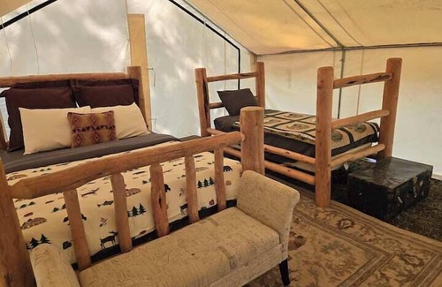 Homesteader Wall Tent, Homesteader Wall Tent by the Stream posee 1 Dormitorio , 1 Baño, y ocupación máxima de 2 people. El alquiler mínimo para esta propiedad es 1 nights, Pero esto puede cambiar dependiendo de la temporada que planee quedarse. Los invitados anteriores lo han calificado 1, y VRBO lo etiquetó como un Casa de primera calificación debido a los excelentes servicios prestados por el propietario o gerente de este Casa, y ha proporcionado constantemente excelentes experiencias para sus invitados. La mayoría de las familias o invitados que lo usan lo recomiendan a sus amigos y algunos son invitados repetidos. Casa tiene un vecindario amigable, y el Saddlestring tiene lugares interesantes para visitar. Si quieres aprender más sobre el Casa en Saddlestring, Como lugares para visitar y cosas para hacer cerca, puede consultar a continuación para obtener más información.