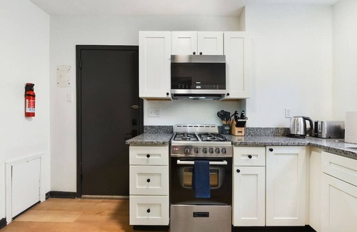 Al instalarte en este alojamiento de 1 dormitorio y 1 baño, encontrarás una sala de estar, aire acondicionado y escritorio. Conéctate al wifi gratis, o relájate frente a un Smart TV. También hay un reproductor estéreo. El cuarto de baño incluye un secador de pelo y champú. La cocina está equipada con horno, placa de cocina y frigorífico, además de cafetera y tetera, microondas y utensilios de cocina. Y como podrás aprovechar la lavadora y la secadora, no te hará falta llevar mucho equipaje. Otras comodidades incluyen ropa de cama, una tabla de planchar, calefacción y una silla de oficina.