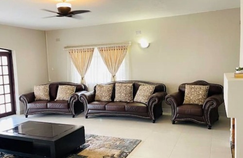 Esta casa de vacaciones de 6 dormitorios y 5.5 baños se encuentra en Bulawayo y es una ubicación fantástica desde la que recorrer los alrededores. A los amantes de la naturaleza y el aire libre les encantará estar a 5min en coche de Parque del Centenario y a 3min de Hillside Dams Conservation. Estarás a 5min en coche de Feria Internacional de Zimbabue y a 4min también en coche de The Nesbitt Castle.