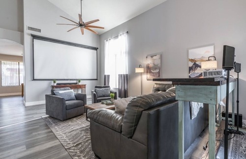 Esta casa de vacaciones de 4 dormitorios y 2.5 baños se encuentra en Goodyear y es una ubicación fantástica desde la que recorrer los alrededores. A los amantes de la naturaleza y el aire libre les encantará estar a 12min en coche de North Lake y a 15min de Salt River. Puedes conducir 18min hasta Estadio de la Universidad de Phoenix o 14min hasta Pista de carreras Phoenix Raceway.
