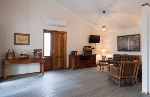 Relájate en el porche o patio o tómate algo en el brasero de jardín de esta casa de campo. En cuanto al interior, puedes disfrutar del wifi y de la televisión.