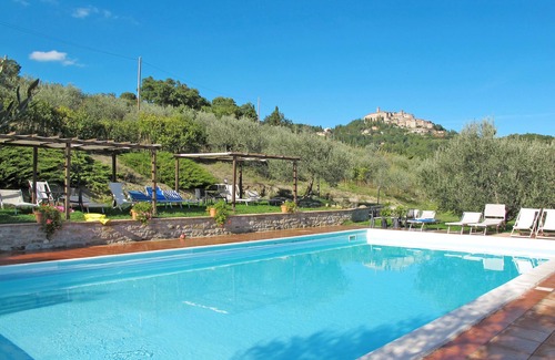 Agricultural estate "Il Monte", 700 m a.s.l.. 5 houses in the residence. 10 apartments in the residence. 13 km from the centre of Città di Castello, 28 km from the centre of Sansepolcro, 42 km from the centre of Arezzo, in the countryside. For shared use: property with lawn and trees, swimming pool fenced (14 x 7 m, depth 90 - 140 cm, seasonal availability: 22.May. - 30.Sep.). In the house: reception, lounge with TV, WiFi. 800 m long motor access (via unmade road). Parking on the premises. Shop 2 km, supermarket 13 km, bathing lake "Trasimeno" 55 km. Golf course 10 km, tennis 5 km, riding stable 50 m. Nearby attractions: Anghiari 21 km, Gubbio 55 km, Perugia 57 km. Local sale of farm products. Please note: the owner lives on the same property.