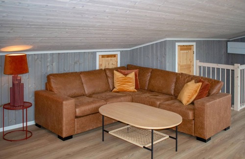 Disfrute de unas vacaciones maravillosas en esta hermosa y elegante casa de vacaciones junto a Sandefjord. El ambiente elegante con madera, materiales de alta calidad y grandes ventanales crea un oasis de bienestar en dos plantas, que le facilitará la relajación. Elige tus habitaciones favoritas, ya que tienes a tu disposición cuatro dormitorios y varios balcones, así como una terraza. Relájese en el sofá durante las tardes de cine o prepare deliciosas comidas en la cocina bien equipada.