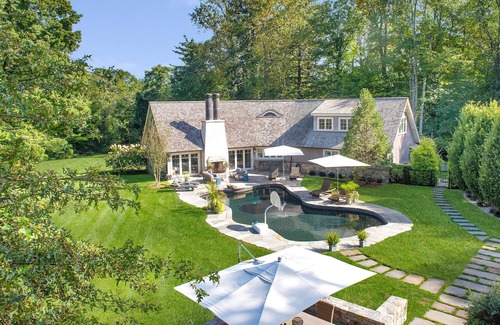 Este impresionante y exclusivo complejo de 6500 pies cuadrados reside en 2 3/4 acres y está ubicado entre Darien y New Canaan, CT. Está a solo 3 millas de la estación de tren Metro-North. La casa fue construida originalmente en 1932, pero desde entonces ha sido completamente renovada, incluido un espectacular "granero" de entretenimiento de 2000 pies cuadrados ubicado junto a la piscina, una sala de estar completamente nueva, un gimnasio, una cocina nueva, baños recientemente renovados y un sótano para niños recientemente renovado. Proporcionaría el retiro perfecto de verano en el campo para que un ejecutivo y su familia disfruten plenamente de lo mejor de la vida de Connecticut mientras se encuentran a una distancia sorprendente de Manhattan.