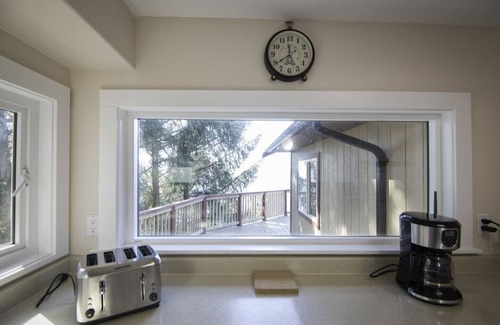 Impresionantes vistas sobre las Montañas Olímpicas y el Estrecho de Juan de Fuca, a menos de 10 minutos de la ciudad de Sooke. Clifftop 1400 pies cuadrados ranchero en el parque como área de cultivo con disposición abierta cocina / sala / comedor con estufa de pellets acogedor y deslizadores a una cubierta envolvente. Enorme dormitorio principal con cama king size, acogedora estufa de leña, acceso a la terraza y baño completo. Segundo dormitorio con cama de matrimonio y segundo baño completo al otro lado del pasillo. Relájese en el parque como patio trasero. La playa de Gordon está a cinco minutos caminando. Las magníficas ballenas grises pasan por esta casa en la primavera cuando migran a las tierras de alimentación del norte, y regresan nuevamente en el otoño. Las vainas itinerantes de las ballenas asesinas residentes también se pueden ver en alta mar, así como nutrias, focas y leones marinos.