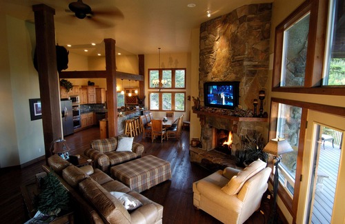 Amplia cabina de diseño personalizado en Priest Lake Golf Course. 3 habitaciones principales y 1 habitación de matrimonio. Las camas son súper cómodas con nuevas sábanas y almohadas de plumas. Arriba, el maestro tiene un balcón con impresionantes vistas a las montañas y al campo de golf, bañera profunda, ducha con 2 cabezales de ducha y lavamanos para él y para ella. 2 dormitorios principales en la planta baja, cada uno con baño privado, armario y ducha. Las tres habitaciones master con hermosa vista al campo de golf. Dormitorio adicional en la planta baja con una cama queen. 2 sofás-cama tamaño queen con sofá cama / sofás en la espaciosa sala de estar de la planta baja.