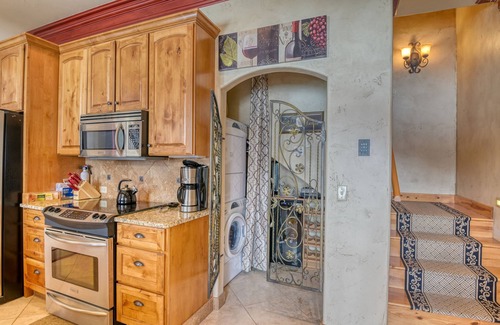 Al instalarte en este alojamiento de 1 dormitorio y 2 baños, encontrarás una sala de estar, un comedor, un sofá cama y chimenea. El cuarto de baño incluye un secador de pelo, artículos de higiene personal gratuitos y toallas. La cocina está equipada con horno, placa de cocina y frigorífico, además de cafetera y tetera, máquina de hielo y microondas. Podrás viajar con poco equipaje, porque tendrás una lavadora y una secadora a tu disposición.