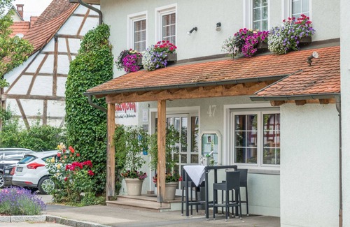 Hotel familiar en una ubicación central entre Reutlingen y Tübingen. 'Waldhorn de Mayer' es una posada rural típica de Suabia en el pintoresco pueblo de Mähringen, a medio camino entre Reutlingen y Tübingen. El Waldhorn es un negocio establecido desde hace mucho tiempo y está incrustado en el paisaje original, la reserva natural Blaulach en el norte y la reserva natural Ehrenbachtal en el oeste. En el hotel ofrecemos habitaciones de diseño moderno con desayuno. El restaurante Waldhorn también es conocido en todo el país gracias a la excelente cocina de nuestro propietario Gerhard Mayer. La ubicación tranquila pero conveniente es ideal para viajeros de negocios en la región metropolitana de Stuttgart y turistas en la región. La gran cantidad de vistas impresionantes, los lagos acogedores y los interesantes museos hacen de la zona un punto de partida perfecto para estancias con toda la familia. Le pedimos su comprensión de que no podemos permitir mascotas en el hotel con respecto a otros huéspedes.