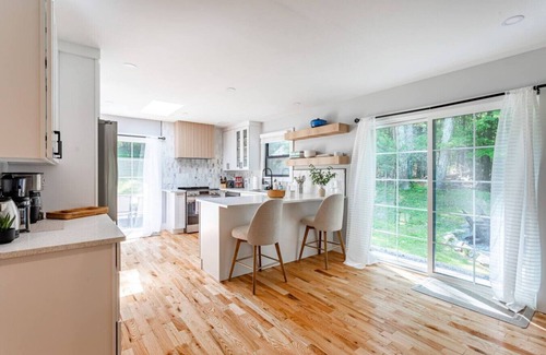Step into comfort and calm at Hommel House, a modern farmhouse retreat tucked in the peaceful woods just minutes from Saugerties and Woodstock. Designed with relaxation in mind, this stylish home welcomes you with warm wood tones, soft natural light, and an open layout perfect for gathering with friends or family.